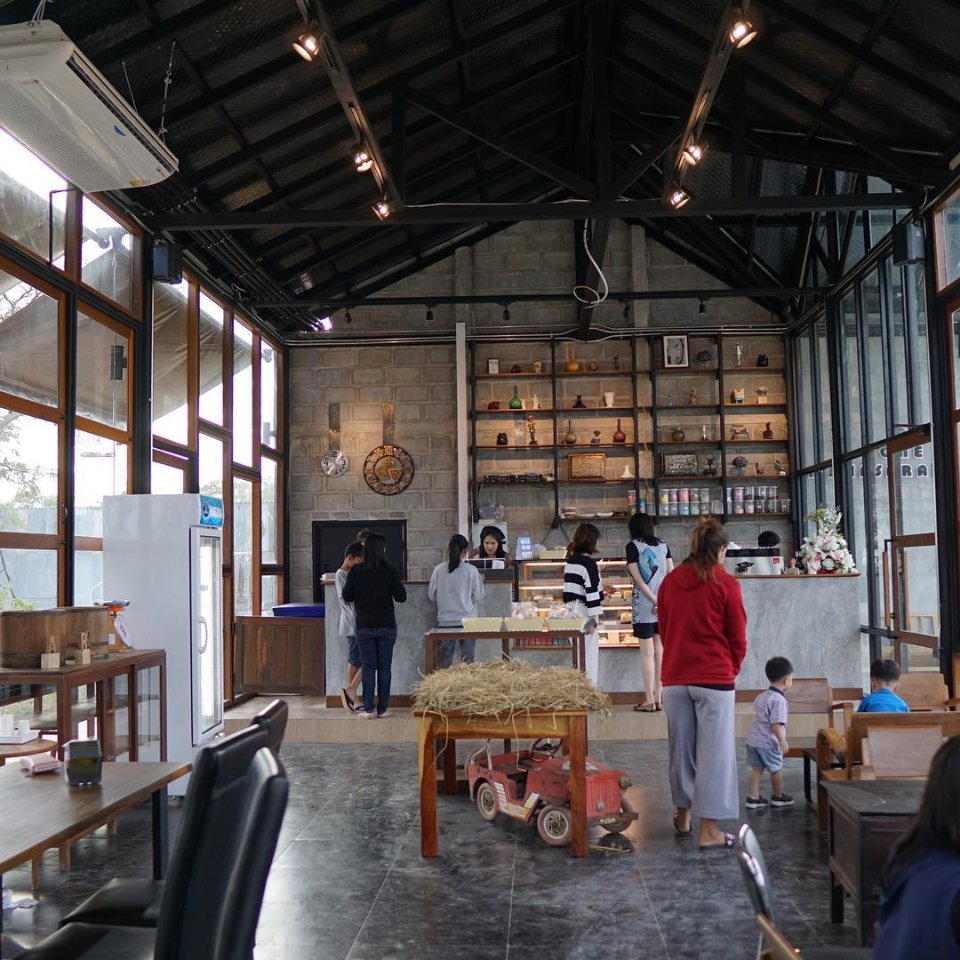 อารยฟาร์มมหาสารคาม ร้านบรรยากาศดี มีเครื่องดื่มกับเค้ก มีมุมนั่งชิลๆ กับบรรยากาศธรรมชาติ ดอกไม้สวยๆ